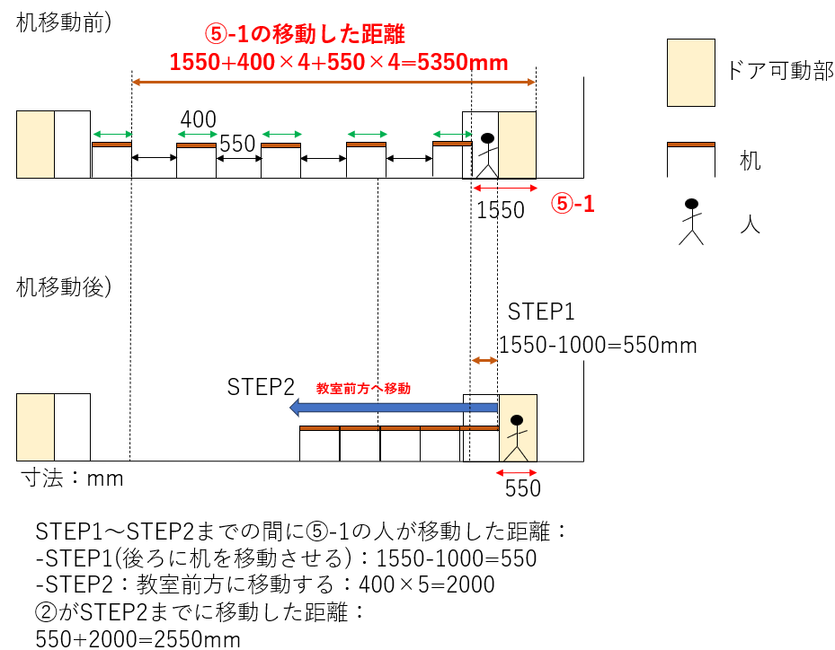- ⑤-1は後方に机を1000mm移動させるものとする。