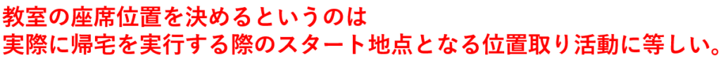 従って、帰宅の理想的なスタートを切るために教室の座席位置を考察しておくことは非常に重要なのである。