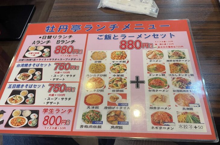 今回紹介した牡丹亭は学生時代に何度もお世話になったお店です。7年ぶりに来ましたが味もメニューも変わってなかったので安心しました!!